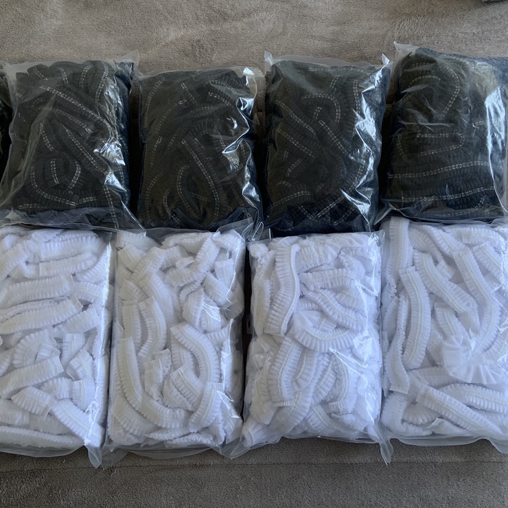 - Cofias desechables disponibles en color negro y blanco